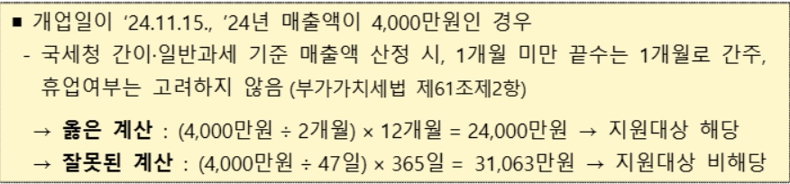 *23년 또는 24년 연중 개업한 경우 개업 이후 월평균 매출액을 연환산